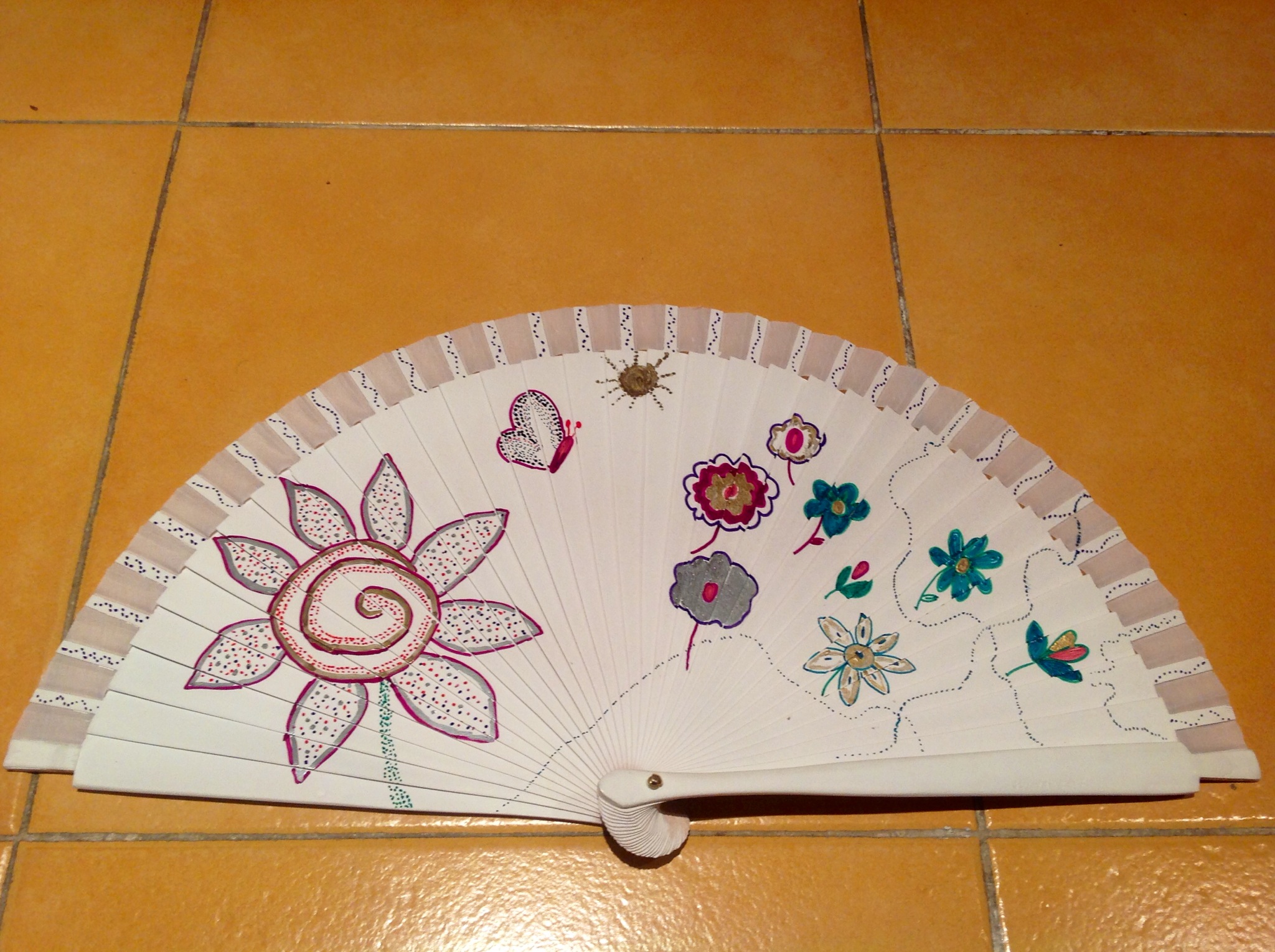 Para la boda de mi hermano me hice estos 2 abanicos blancos ya que mi vestido era blanco y negro.