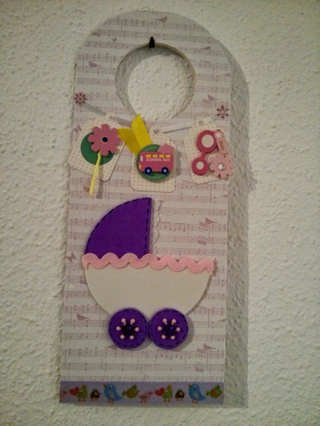 Realicé un encargo a una compañera de infantil y tanto le gustó el resultado que me encargó otro igual para otra bebé. Le cambié el color del carrito de bebé y otros elementos y lo personalicé con el nombre de Noa. Y le ha encantado.