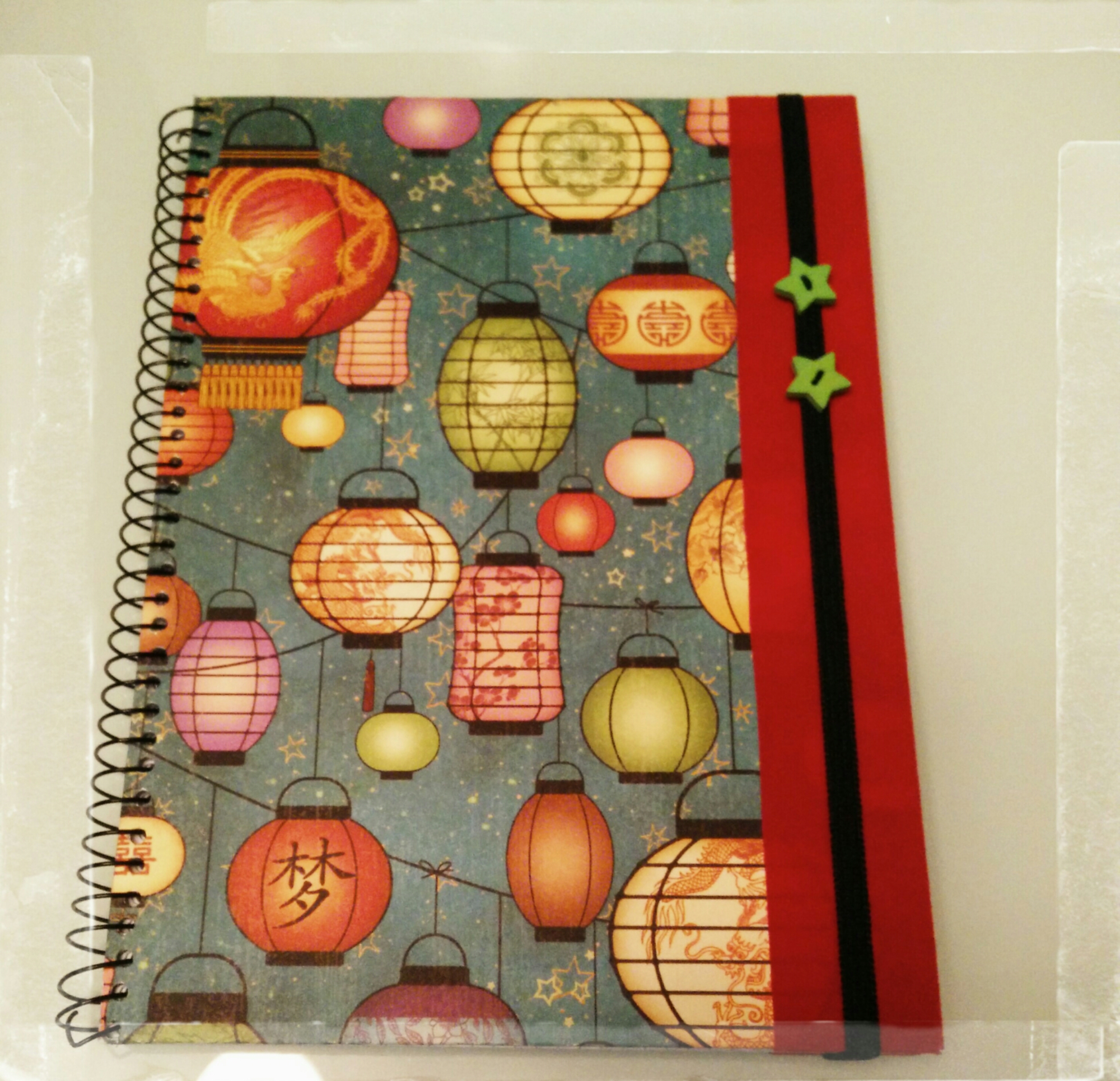 Este cuaderno de cuadros decorado con motivos japoneses,es un encargo de una compañera del trabajo.